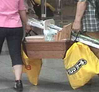 3Mの実演コーナーで変わった布が展示されていました。今はやりの汚れを落とすスポンジのようなものです。鏡にクリームを塗って、普通の布と3Mの布の2種類で拭いて見せます。