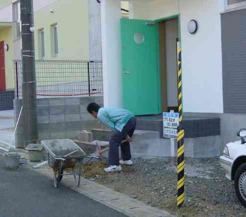 工事の途中だけど、駐車スペースの下に電気配線をして欲しい、と言うと気持ちよくOKしてくれました。すでにコンクリートを打った所なのに、それを崩して配管を通してくれました。