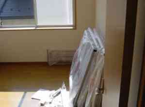 外溝工事は、職人さんに任せて、私は2台のベッドの組み立てをはじめました。まず、ハイベッドです。日通のお兄さんは軽々と運んで居ましたが、アッシには重たくて持てません。やむなく、玄関でばらして、部品にして二階へ運びました。