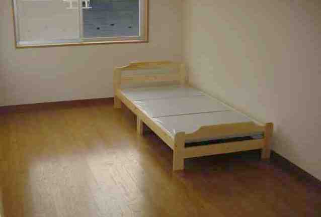 日も傾いてきたので、再び家へ戻って、残りの木製のベッドを組み立てました。こちらは南東の角部屋に置いて、来客用にします。この部屋が2階で一番広い部屋なのでお客様にはゆっくりくつろいで貰えると思います。