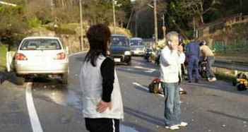 この後、道路に散乱しているガラスの破片などもかたづけておられたようです。