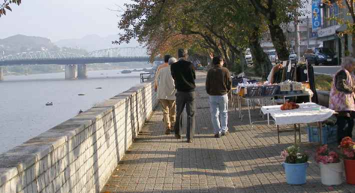 木曽川の河畔で朝市がある、と言うので出かけました。