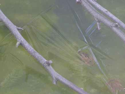 今年初めて庭の池に氷が張りました