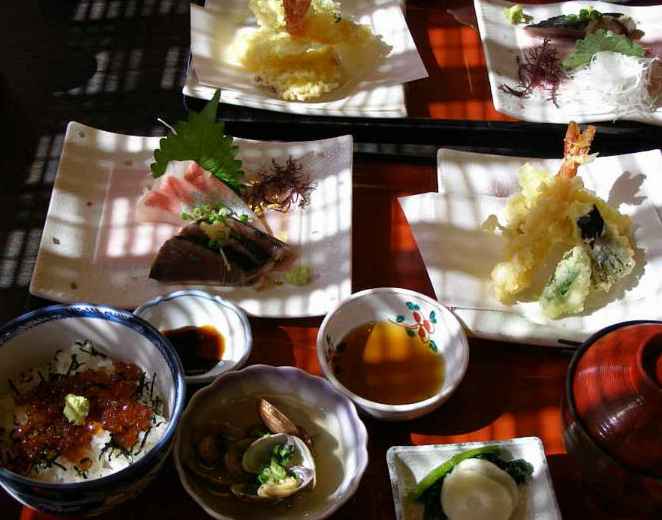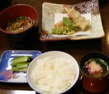飯田の市街地へ入ってレストランを探そうと左折すると、 いきなり良さそうなお店がありました。 かなえ茶屋。 入ってみると、地元の人たちでけっこう混雑しています。 お勧めの築地定食を食べてみました。 これ、なかなか美味しい。