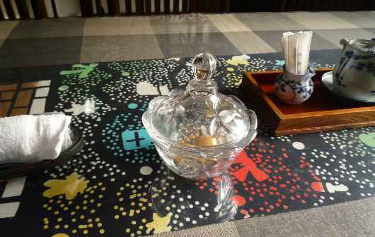 テーブルにあめ玉がおいてあります。