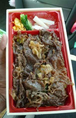途中、御在所サービスエリアで柿安の牛肉弁当を調達。