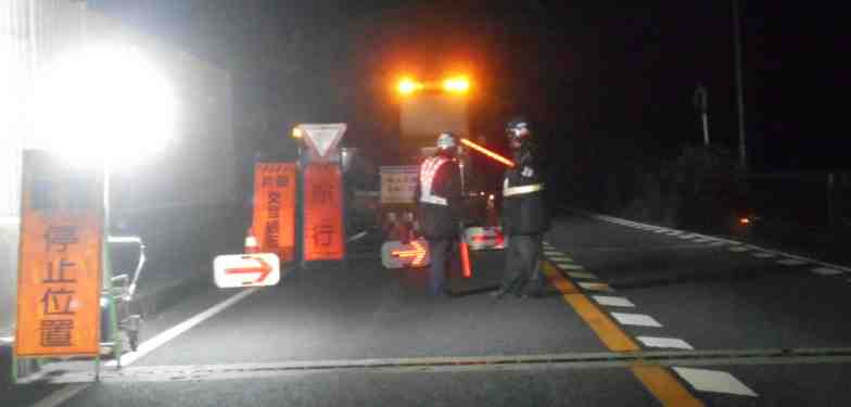 バイパスの工事で片側交互通行。