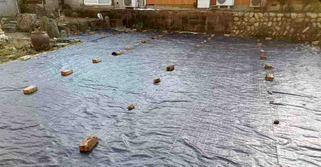 防草シートを敷設。