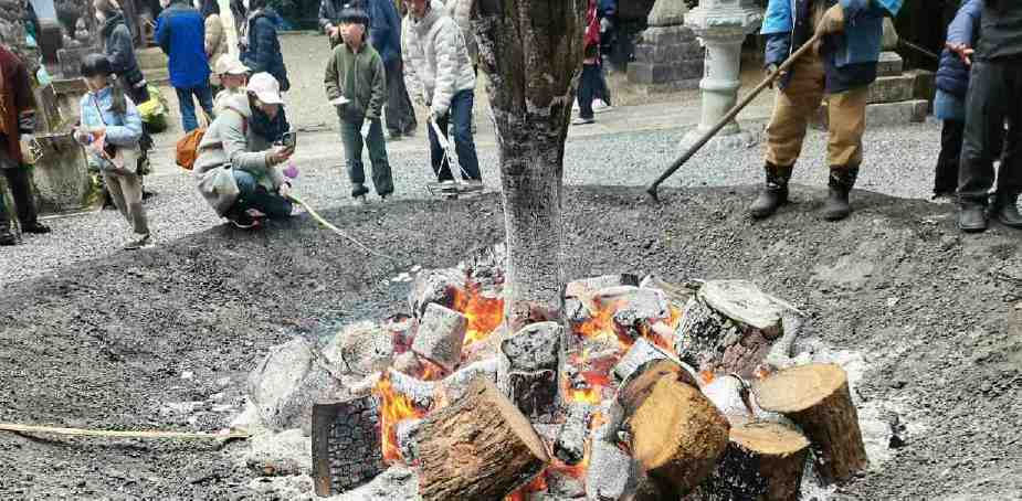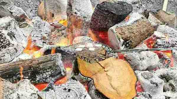 焚き火で餅を
