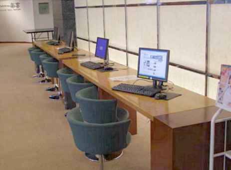 ロビーにはインターネットを利用できるパソコン4台が解放されています。