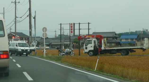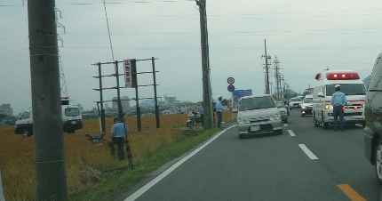 国道8号線を近江八幡へ向けて曲がったら、救急車が来ています。