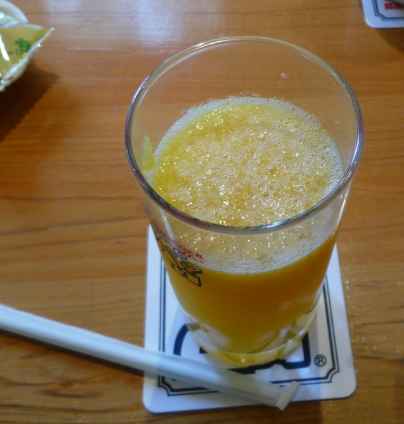 ご覧のように夏みかんをジューサーでつぶして、そのまま出しているようです。
