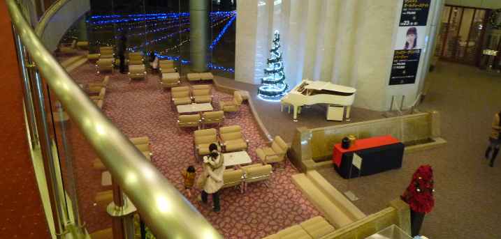 ホテルの庭にはクリスマスの飾り付け