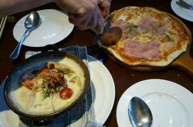 旅館の1階にある創作料理のお店です。 食事の後、銀行の駐車場に停めて、会場へ向かいます。