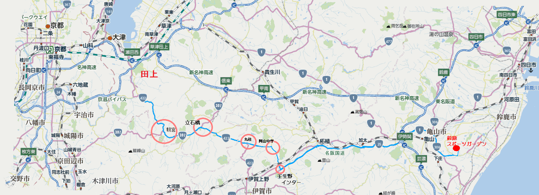 田上から国道422号線を信楽へ向かって南下、朝宮から307号線へ入ります。