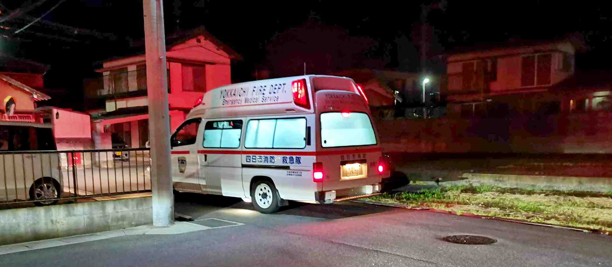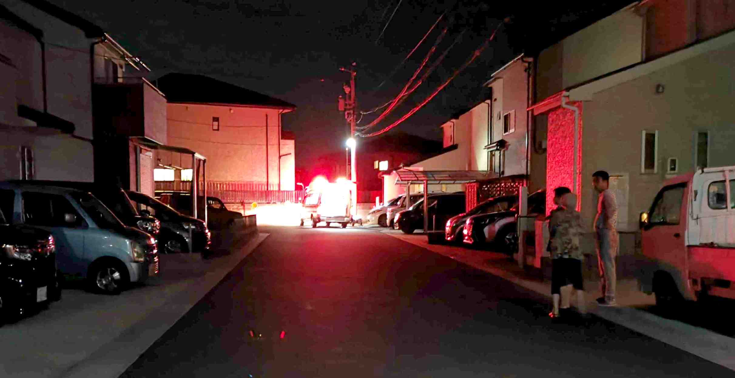 どうやら一番奥の家のご主人が、心臓停止?のようだ。 救急車が出発したら、奥さんが走っていってレスキュー車に乗った。