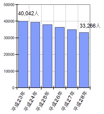 平成28年3月末…33,266人(前年比▲1,702人)