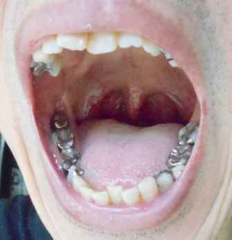 扁桃あたりが赤い。