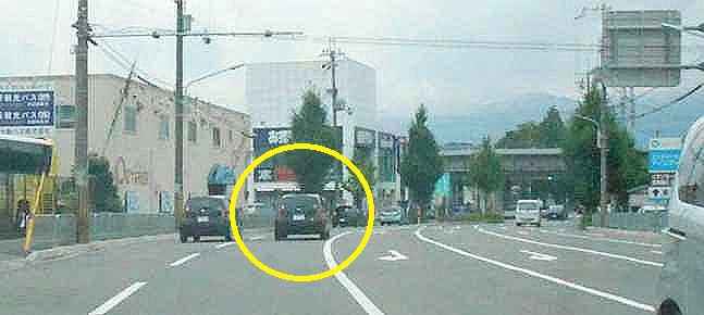 桂川の手前 比較的無茶な運転の車