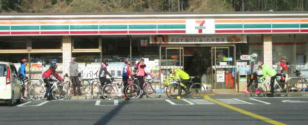 信楽のセブンイレブンには自転車やバイクがイッパイ。