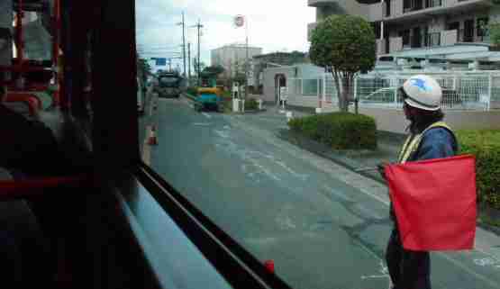 ← 南郷付近、舗装工事でバスが20分ほど遅れている。