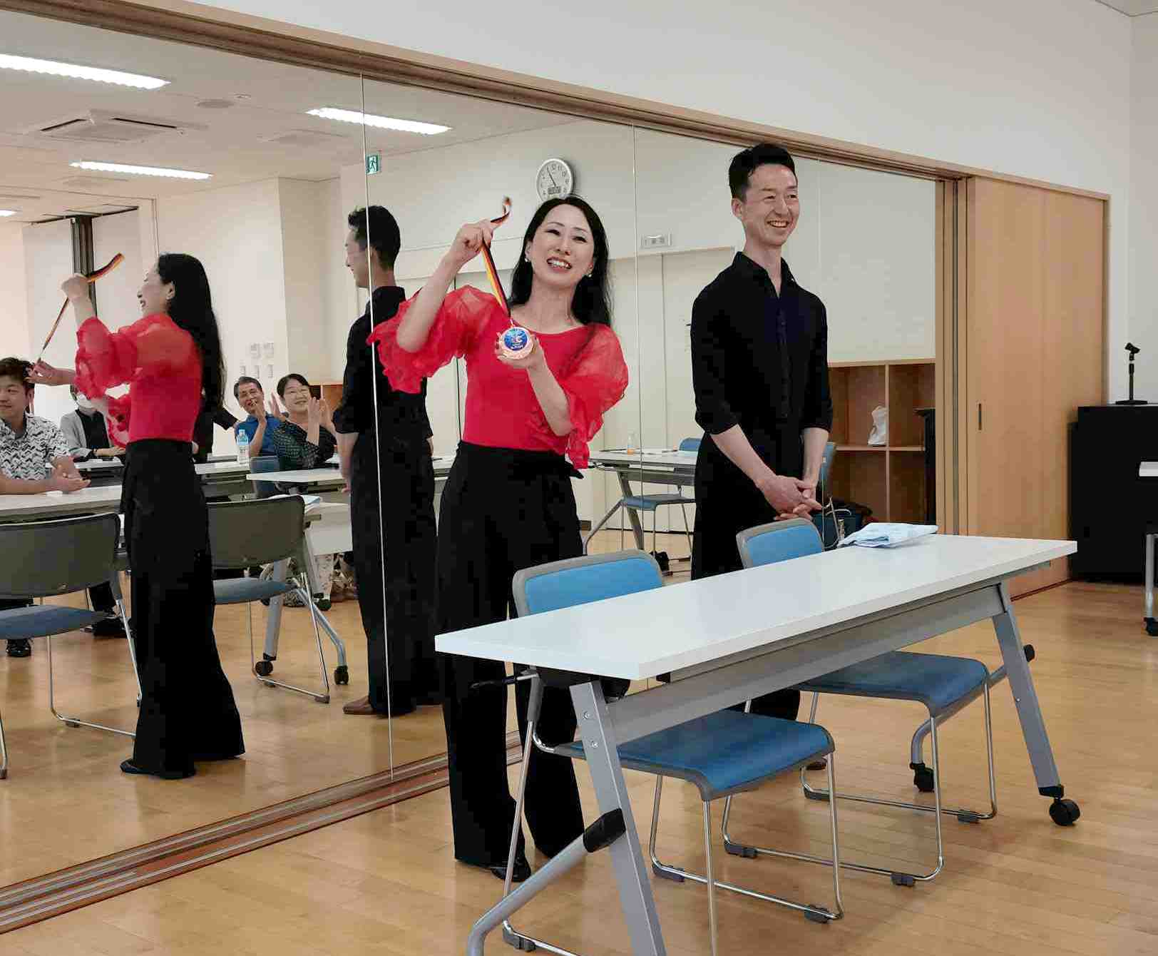 皆さんにメダルを掛けて