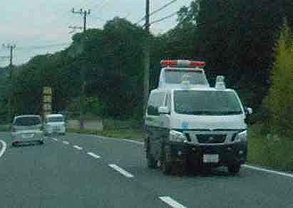 事故処理車、パトカーが現場に向かってる。 比較的大きな事故? ← 無謀な車。 京都ナンバー。