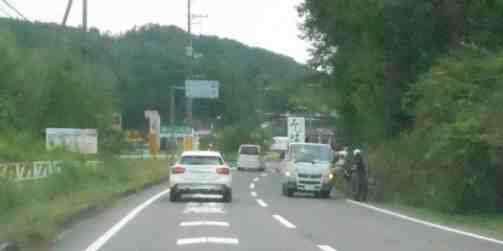 この季節はコンバインが道路にいる。
