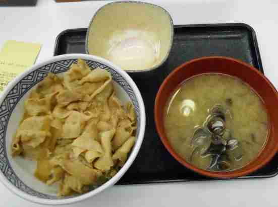 雪のため、8時半で全員撤退。 吉野家でしじみ汁。
