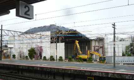 石山駅前の体育館を壊している