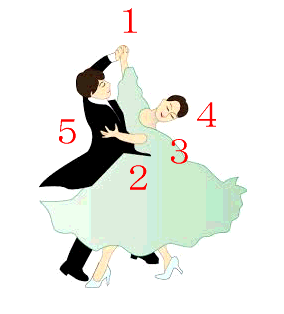2.男性が左手を挙げたら、男性から (または女性から) お互いが近づいて、、