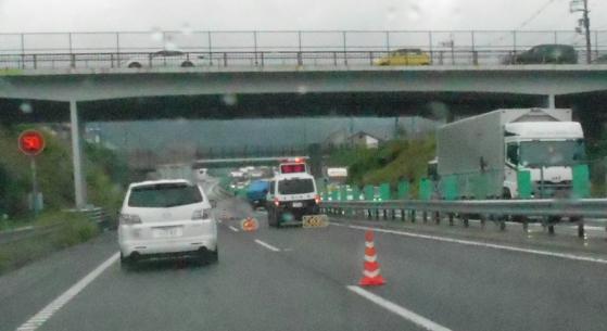 大津サービスエリア手前で追突事故