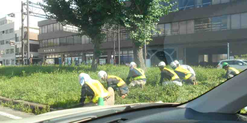 機械を使わず人力で除草。
