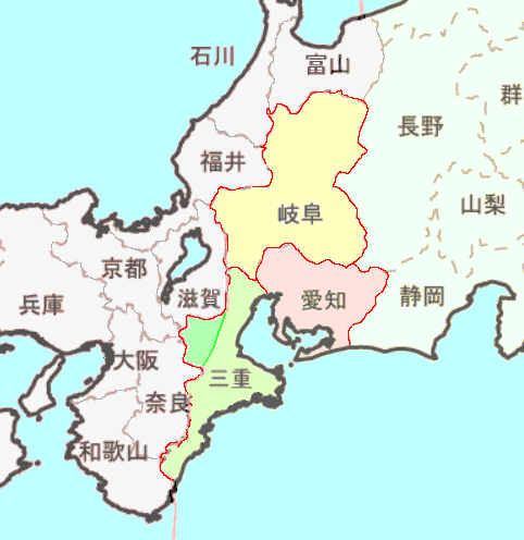 - 東海三県 (愛知、岐阜、三重)