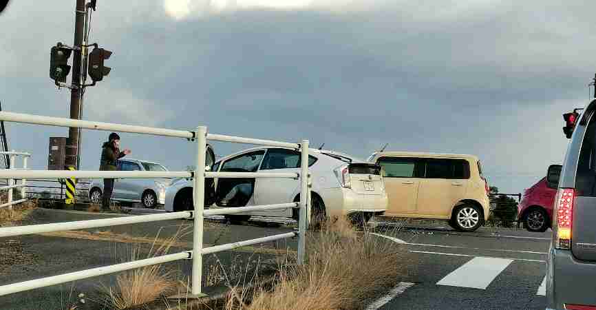 交差点で事故。 南行きの車が右折