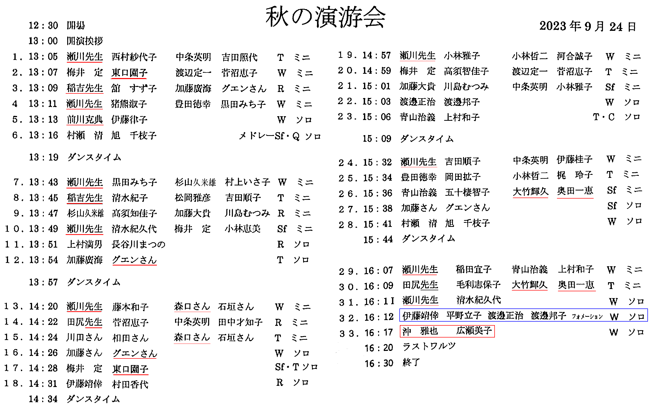 個人レッスン → 堀さん、平田さん。