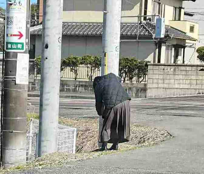 電柱を写メするとポイントをもらえると聞いていたけど、実際にやっているのを見たのは初めて。