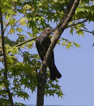庭にはオナガとスズメが来ています。 でも、こちらが動くとビクビクしている。