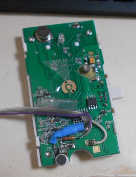 そこで、送信機のマイクを外して、インターホンの中にいれました。