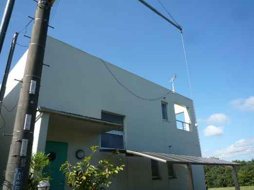 台風の風でケーブルが垂れ下がっている? 屋上へ上り、ケーブルを内側に収納。 高齢者はハシゴの上り下りが危ない。