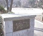 墓地の入り口付近に立つしんちゃんです。