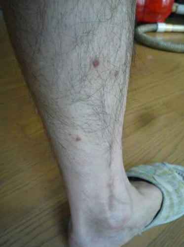 左足に多い。 水疱が出ず、赤くなり、痒い。