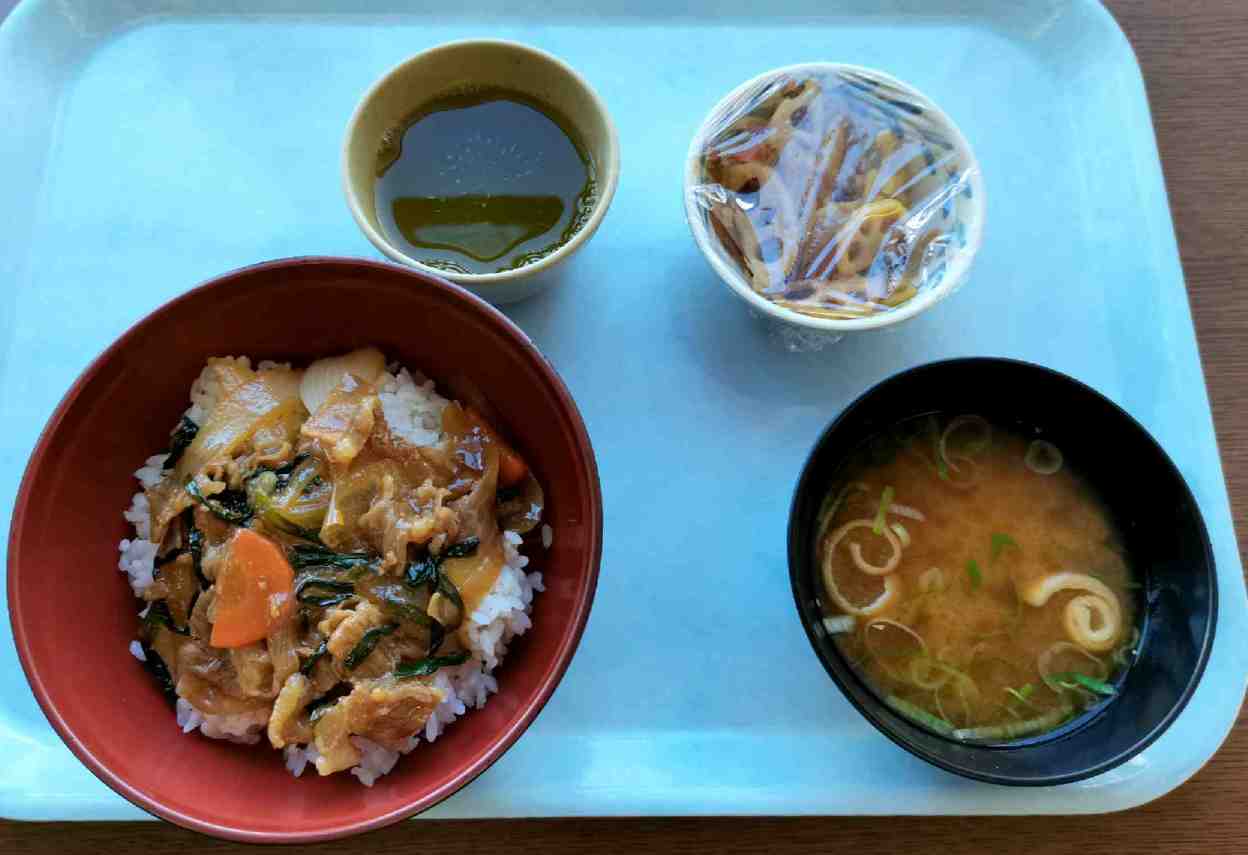 7階食堂、今日のバラエティー定食は牛丼