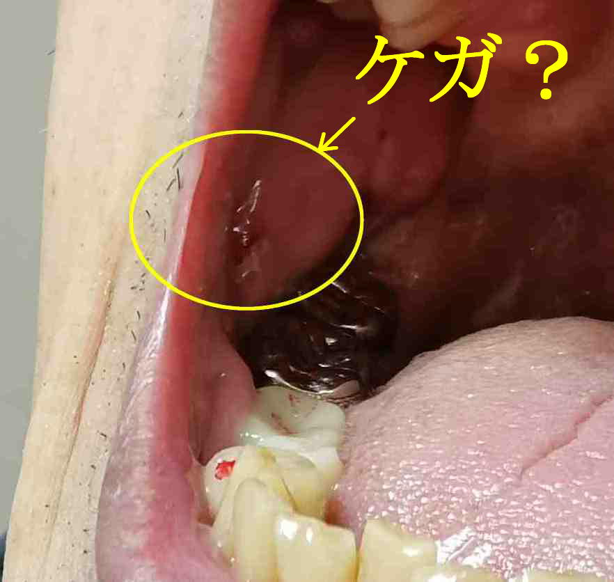 口から血が出たようだ。 痛いところなし。 頬の内側が剥がれている?