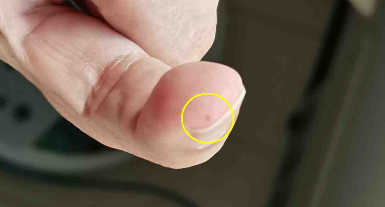 指先に水疱ができていた。