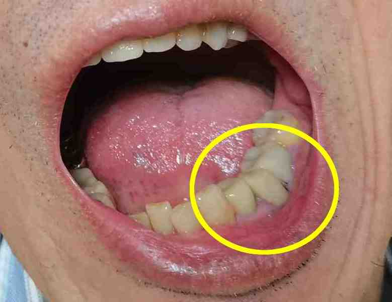 左下5番、外側に倒れている歯のかぶせが外れた。