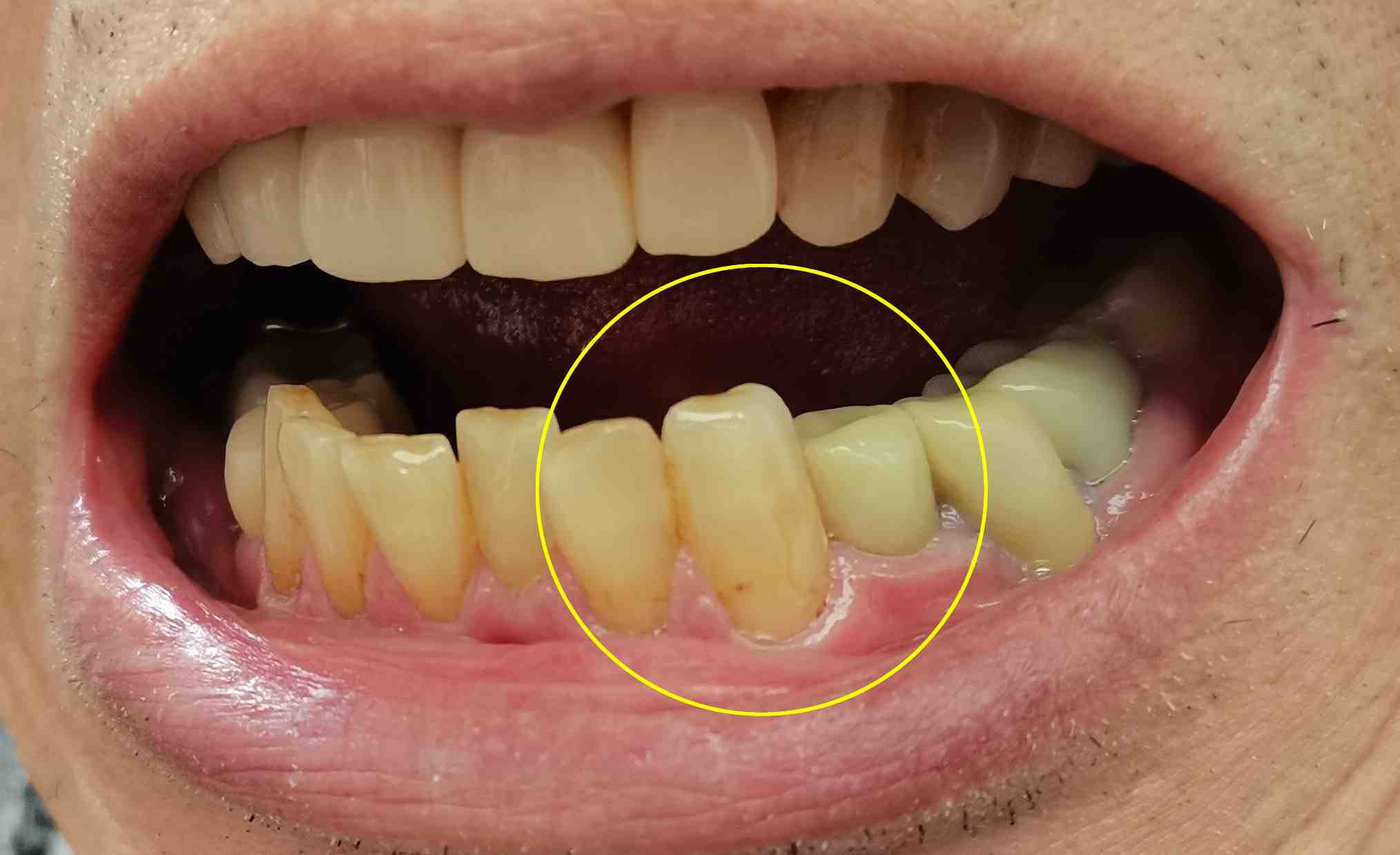 前歯の根元?