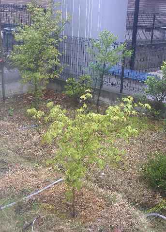 手前のモミジは、昨年まで根っ子の周囲に土がなく成長しませんでしたが 今年は少し土を盛ったら元気に葉っぱが出てきました。 これほど効果があるとは思いませんでした。