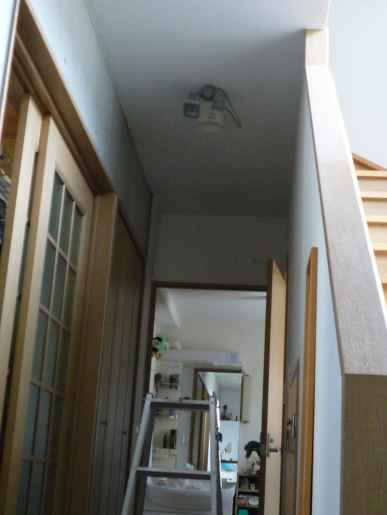 天井に開けた穴が浅くて、ランプの重量に耐えられなかったんだろう、と