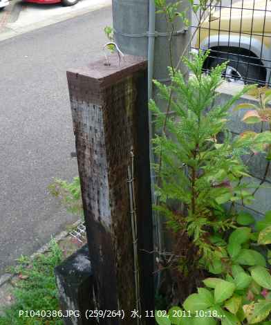 今日は、インターフォンや郵便受けを外して柱本体の塗装をしました。